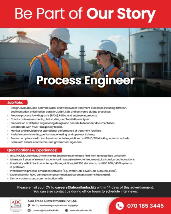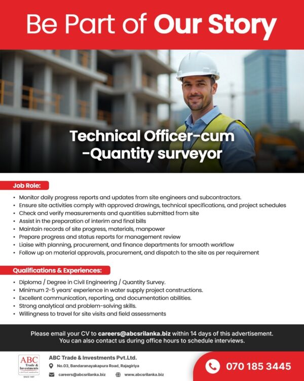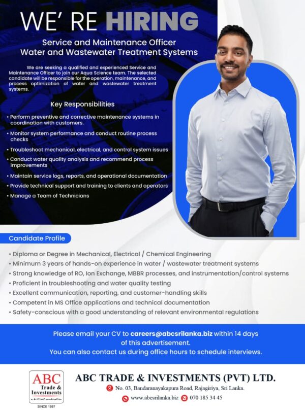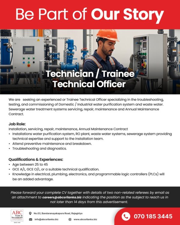 Technician | Rajagiriya, Sri Lanka | Engineering Division | November 11, 2023 |