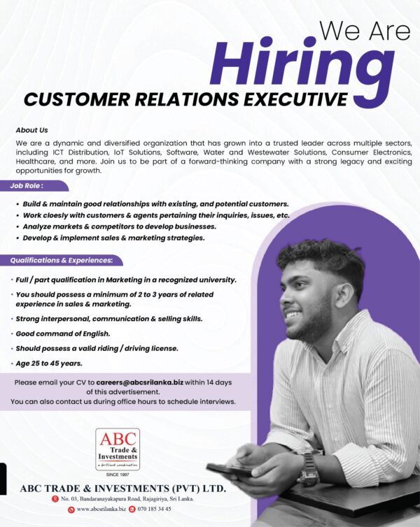 Sales Executive | Rajagiriya, Sri Lanka | Engineering Division | November 11, 2023 |