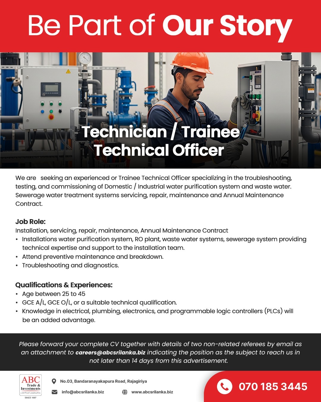 Trainee Technician | Rajagiriya, Sri Lanka | Engineering Division | November 11, 2023 |